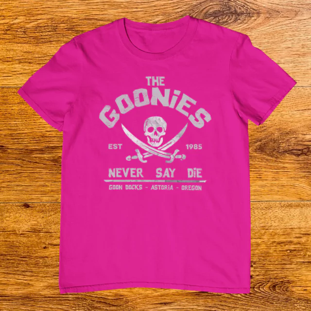 Essa camiseta é a escolha perfeita para os fãs do filme "Os Goonies", lançado em 1985 e dirigido por Richard Donner. A história acompanha um grupo de amigos inseparáveis que se auto intitulam "Goonies" e vivem em Astoria. Quando a casa de um dos membros do grupo está prestes a ser demolida, eles decidem partir em busca do tesouro escondido de Willy Caolho, enfrentando inúmeros desafios e perigos pelo caminho.